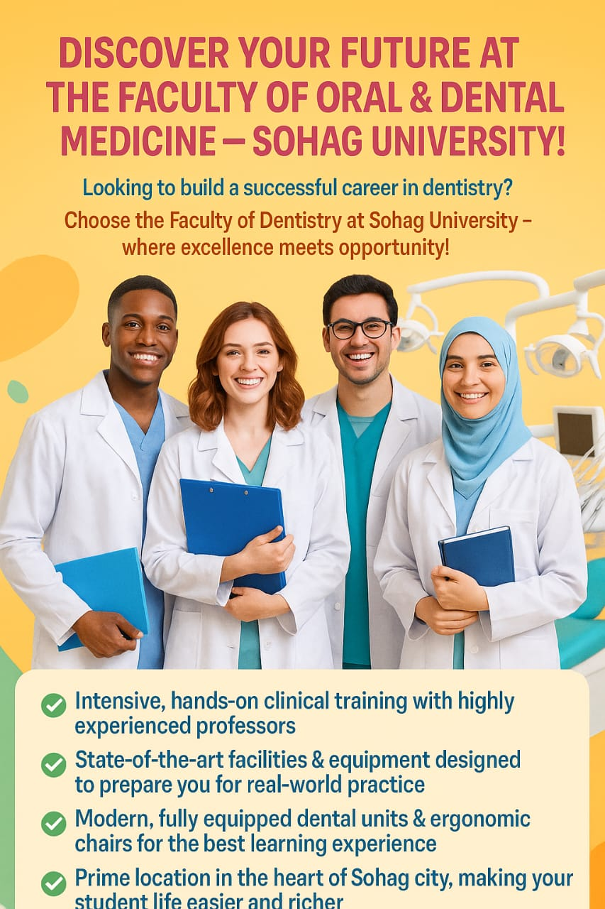 If you are looking for a secure professional future, the Faculty of Dentistry in Sohag is your right choice. تصفّح المقالات *جامعة سوهاج تكرم مشايخ وزارة الأوقاف والأزهر الشريف وممثلي المجلس القومي للسكان شركاء النجاح في نشر الوعي والتثقيف بقضايا المجتمع*مجلس جامعة سوهاج الأهلية يعقد أولى جلساته ويعلن عن المصروفات الخاصة بكل كلية اترك تعليقاً إلغاء الردلن يتم نشر عنوان بريدك الإلكتروني. الحقول الإلزامية مشار إليها بـ *التعليق * الاسم * البريد الإلكتروني * الموقع الإلكتروني احفظ اسمي، بريدي الإلكتروني، والموقع الإلكتروني في هذا المتصفح لاستخدامها المرة المقبلة في تعليقي.