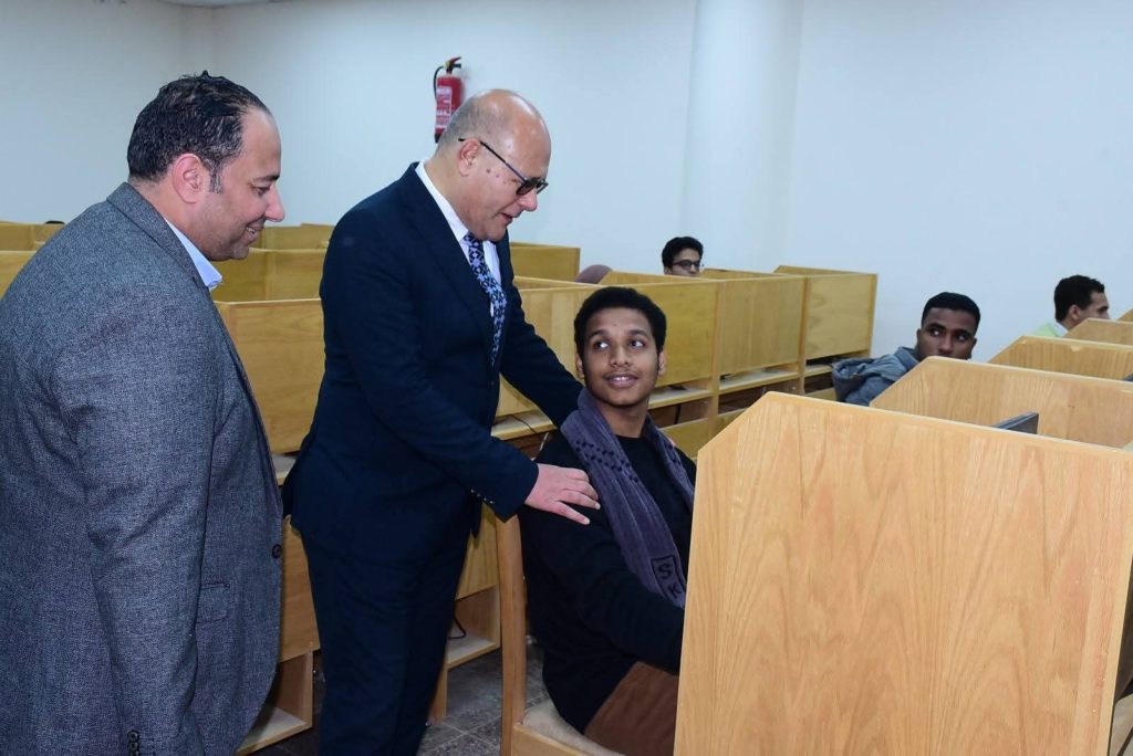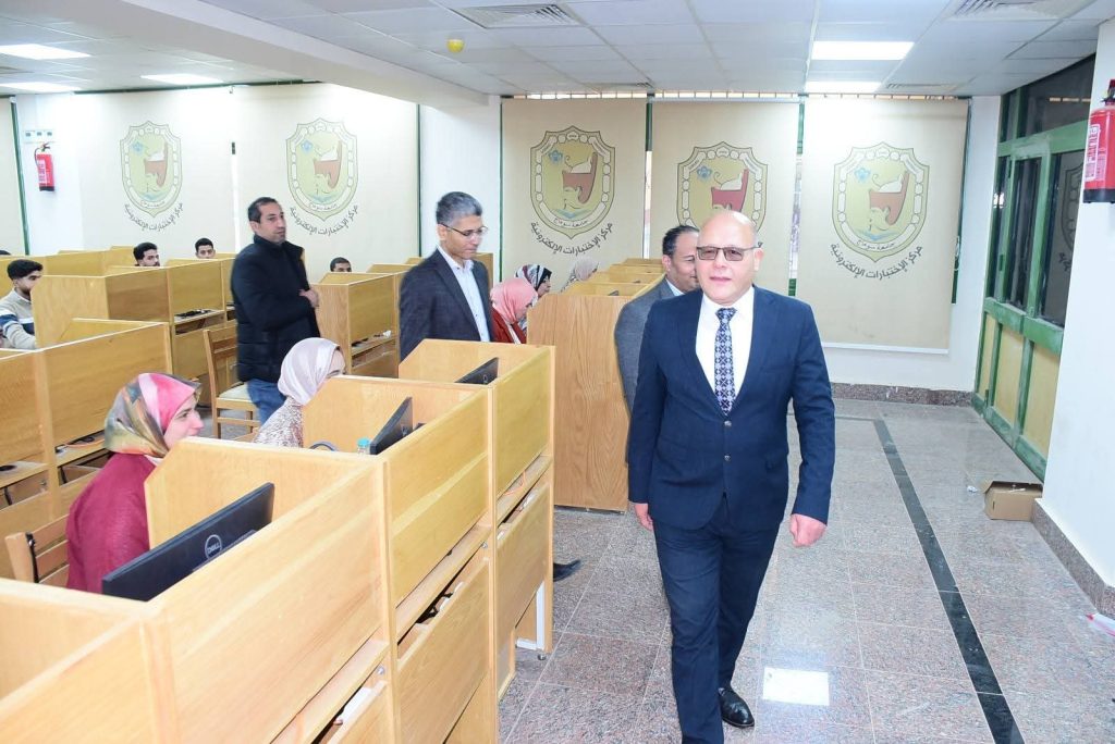 فى إطار المتابعة الميدانية المستمرة لسير امتحانات الفصل الدراسي الأول للعام الجامعي 2025/2026، تفقد الدكتور حسان النعماني رئيس جامعة سوهاج الامتحانات بكلية طب وجراحة الفم والأسنان، للاطمئنان على انتظام العملية الامتحانية، يصاحبه الدكتور اسلام عامر عميد الكلية والدكتور احمد جابر وكيل الكلية لشئون التعليم والطلاب، واللواء طارق حافظ مدير الأمن الجامعي، وذلك بمركز الاختبارات الإلكترونية بالمقر الجديد للجامعة.وخلال متابعته أشاد النعماني بتميز الطلاب العلمي والتطبيقي والذي يعكس مستوى الانضباط والجدية في الدراسة، ودورهم الفاعل في دعم المنظومة الصحية وخدمة المجتمع، ومشددًا على استمرار دعم الجامعة لهم لتخريج كوادر طبية مؤهلة وقادرة على المنافسة وتقديم خدمات علاجية على أعلى مستوى من الكفاءة.وأوضح الدكتور إسلام عامر انه يؤدي امتحانات الفصل الدراسي الأول للعام الجامعي 2025/2026 بالكلية عدد إجمالي٣٣٣ طالب وطالبة، بواقع ٢٥٣ طالبًا بالفرقة الأولى، و٨٠ طالبًا بالفرقة الثانية، في ٦ لجان امتحانيه، مضيفا انه سيتم انتهاء الامتحانات الخاصة بالكلية يوم الأربعاء القادم الموافق ٢١ يناير الجاري.